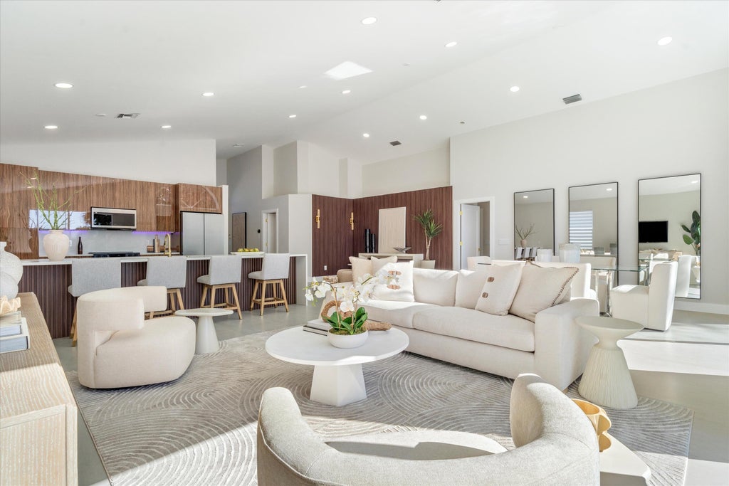 Designed for those who appreciate refined living and effortless luxury, this fully reimagined lakefront pool home delivers a rare blend of modern design, privacy, and resort-style comfort inside the coveted Polo Trace community.Set on a prime lakefront lot, this 3-bedroom, 2-bath residence spanning approx. 2,250 sq ft has been thoughtfully renovated with high-end finishes and a clean, sophisticated aesthetic throughout. Soaring ceilings and expansive living areas create an immediate sense of openness, while carefully curated materials bring warmth and elegance to every space.At the center of the home, the custom chef's kitchen makes a bold statement--featuring an oversized island with fluted detailing, rich wood cabinetry, sleek stone countertops, designer lighting and refined goldaccents. The kitchen flows seamlessly into the main living and dining areas, all oriented to capture the calming lake views beyond.